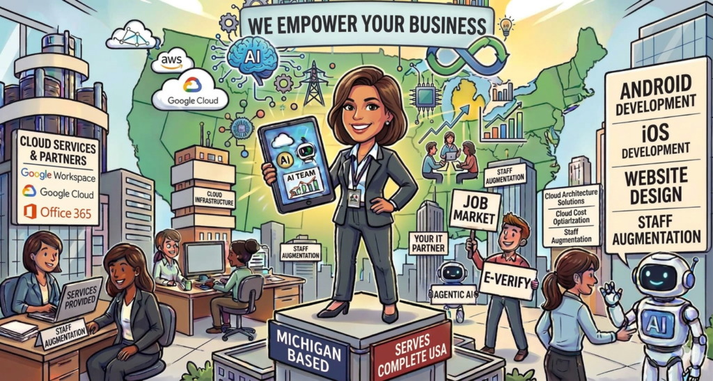 Our services include staffing augmentation, IT consulting, product development, cloud architecture, Google Workspace and Office 365 solutions, open-source web design and cloud cost optimization. We thrive in empowering businesses to scale, innovate, and thrive in a digital world.